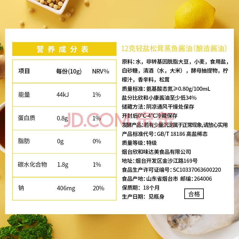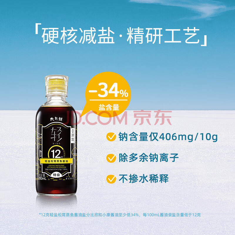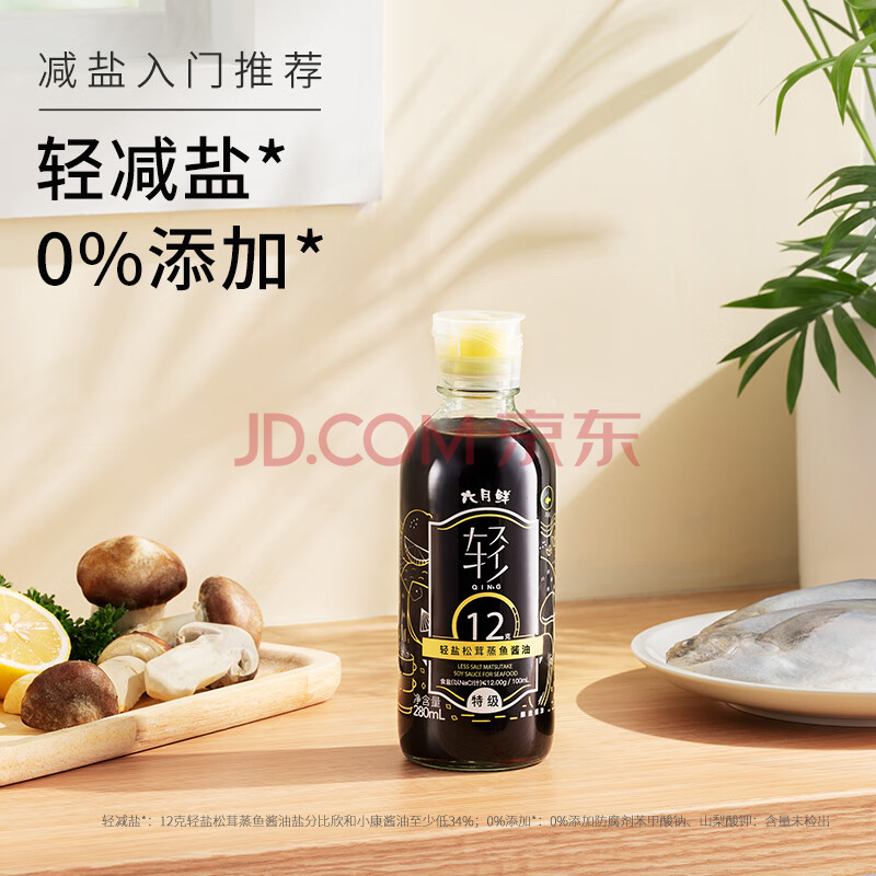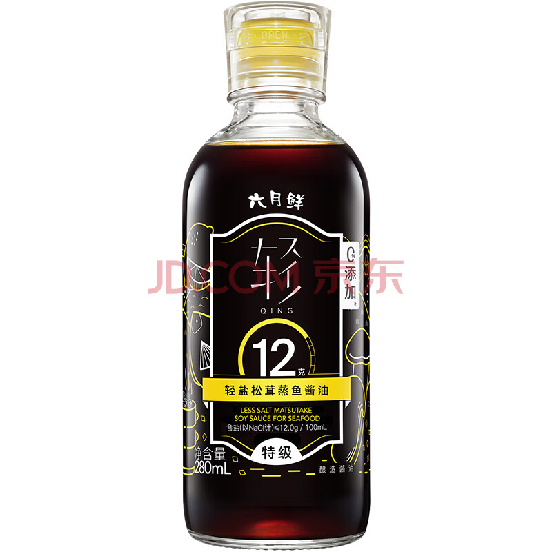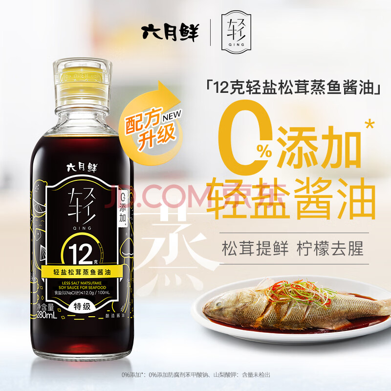 商品相册:六月鲜轻系列12克轻盐松茸蒸鱼酱油280ml【减盐 特级酱油】生抽欣和出品第
