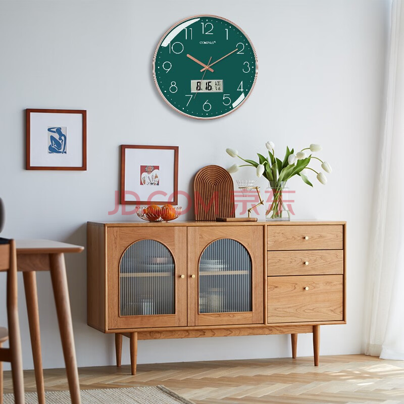 商品相册:康巴丝(Compas)客厅钟表万年历石英钟表挂墙时钟日历挂钟 C3219AY墨绿色 35cm第