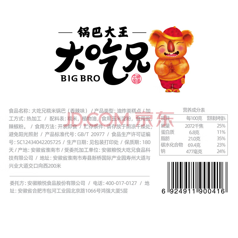 商品相册:粮悦(LIRAY)大吃兄糯米锅巴香辣400g 办公室休闲零食特产出游小吃独立包装第1张/共6