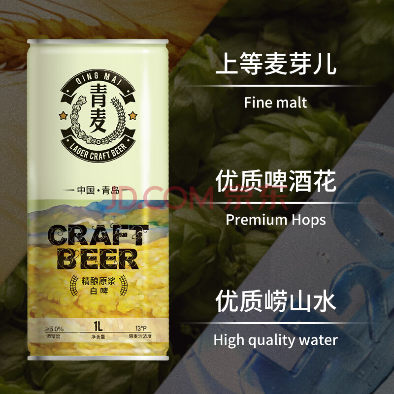 商品相册:青麦(QINGMAI)13度精酿啤酒 1L*6桶头道原浆白啤 整箱兔年春节年货送礼礼盒装第