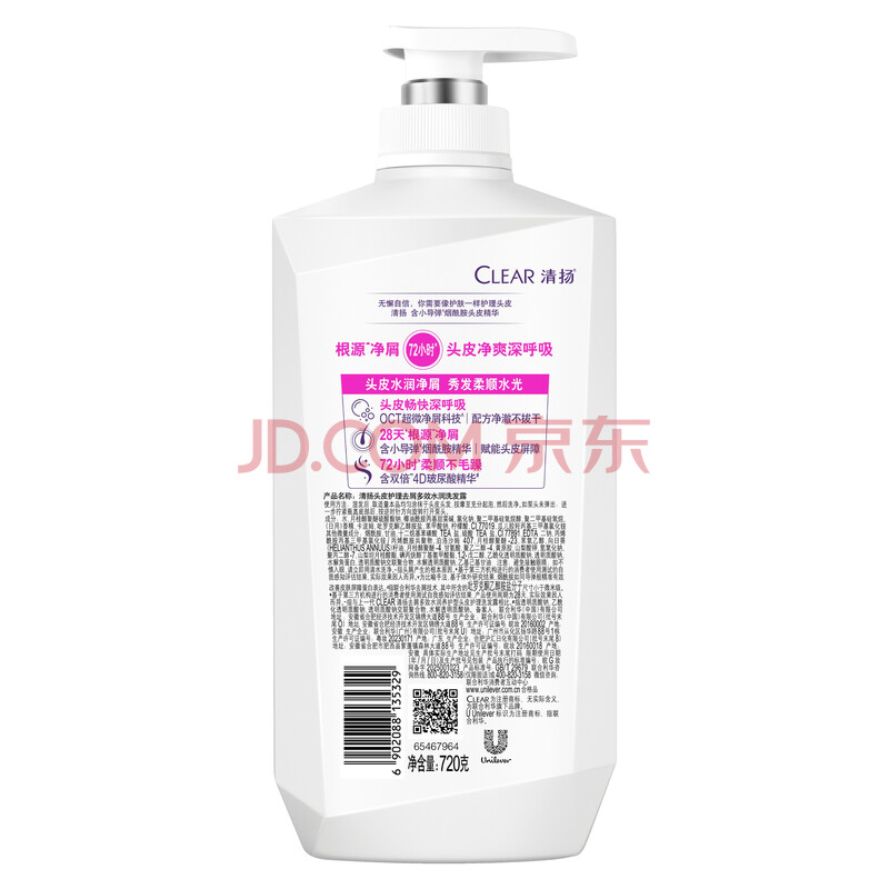 商品相册:清扬女士去屑洗发水 多效水润720g 玻尿保湿洗头膏 京东自营金榜第1第