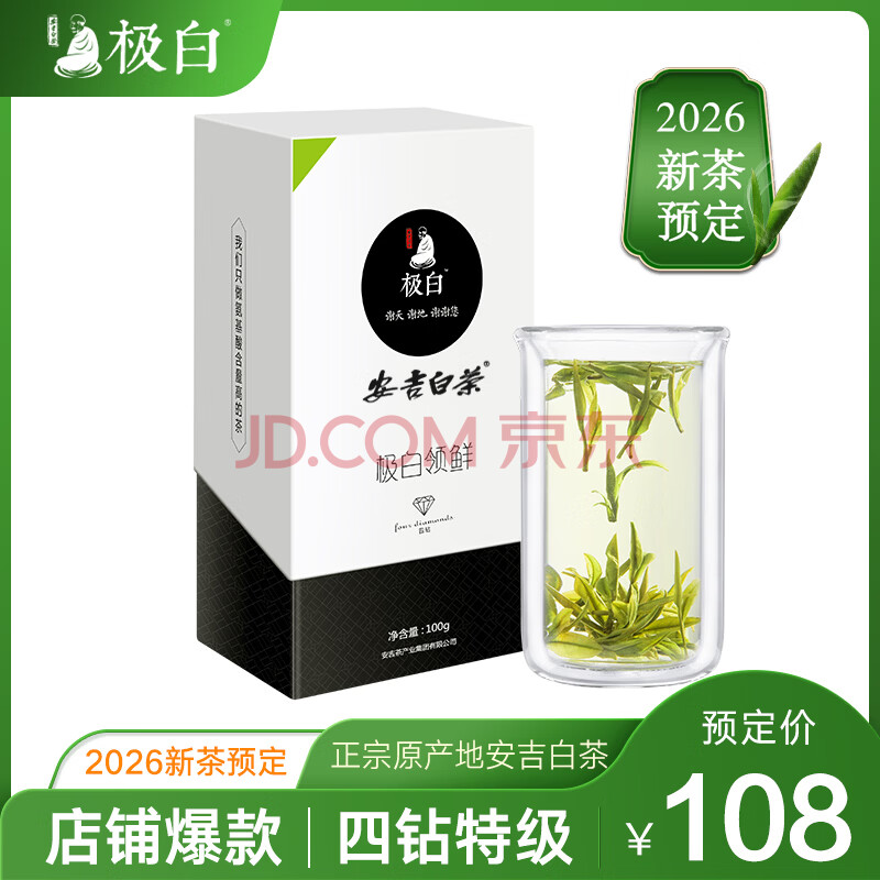 商品相册:极白绿茶雨前安吉白茶四钻100g 2026年特级罐装新茶茶叶 预售第