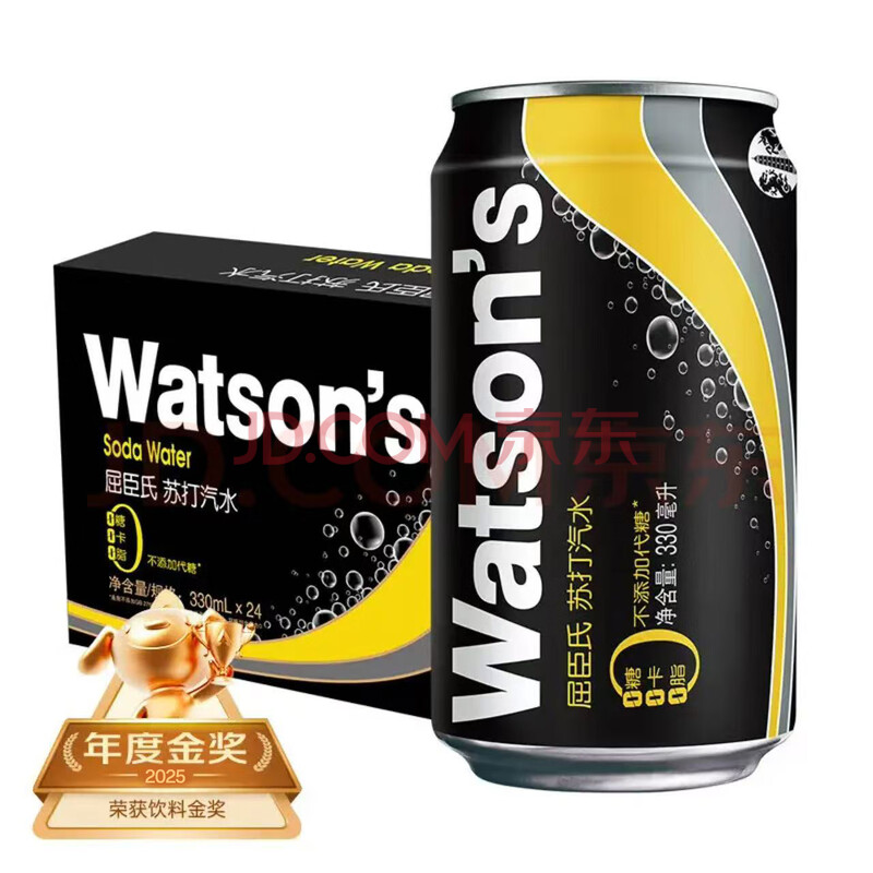 商品相册:屈臣氏(Watsons)苏打水0糖0卡0脂原味含汽健身无糖饮料调酒气泡水330mL*24罐整箱第