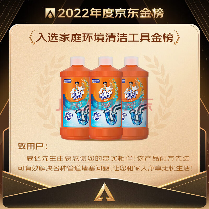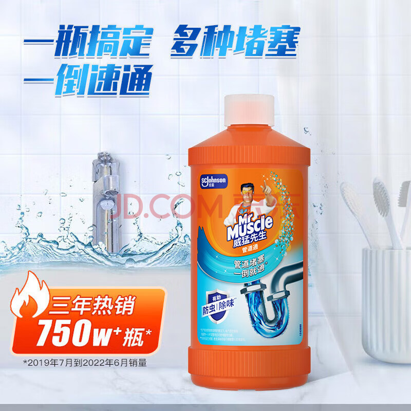 商品相册:威猛先生(Mr Muscle) 管道疏通剂 500g*3瓶 下水道疏通剂 马桶卫生间管道疏通第1张/共8
