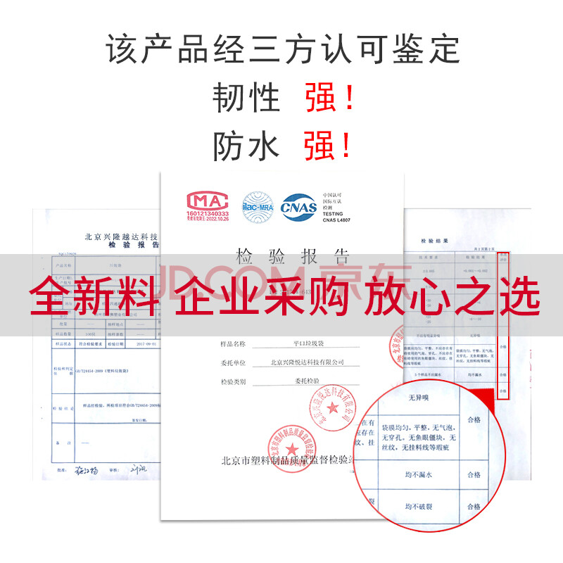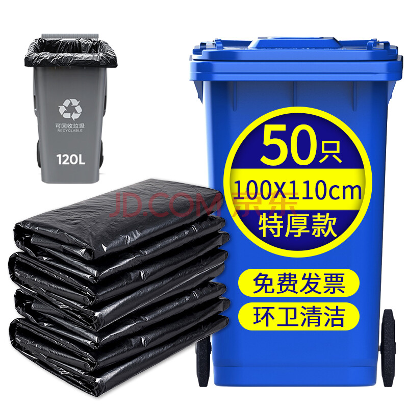 商品相册:京惠思创物业垃圾袋黑色100*110cm50只3.3丝大号加厚平口商用保洁酒店环卫第