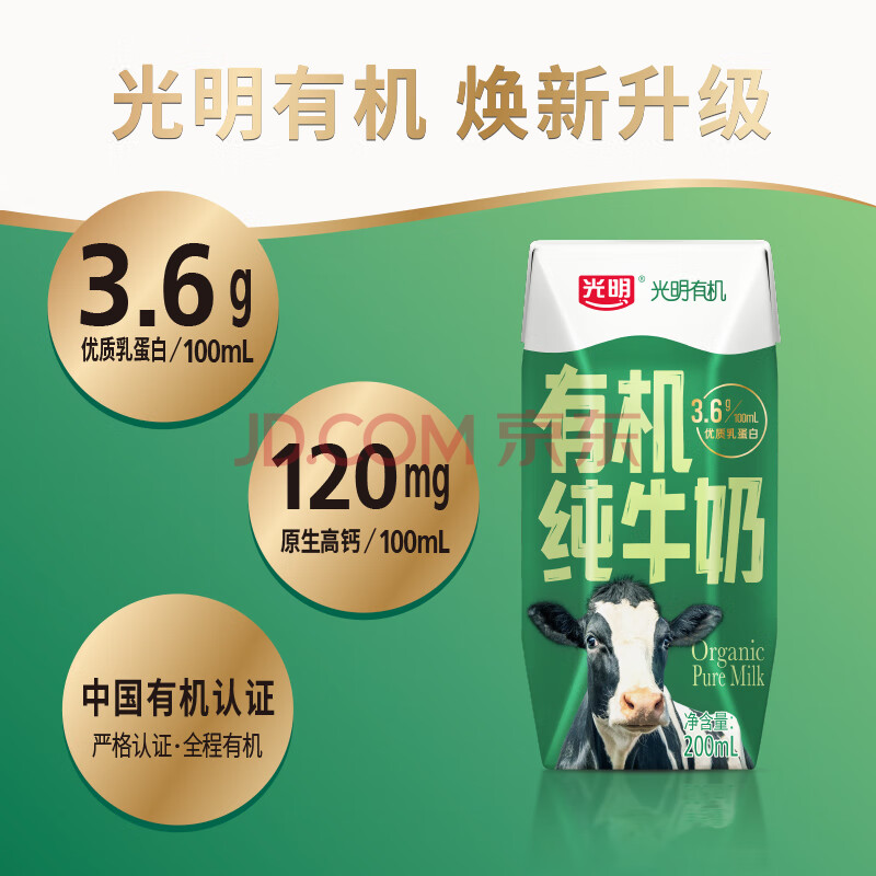 商品相册:光明有机纯牛奶200mL*12盒 3.6g优质乳蛋白 送礼礼盒装第