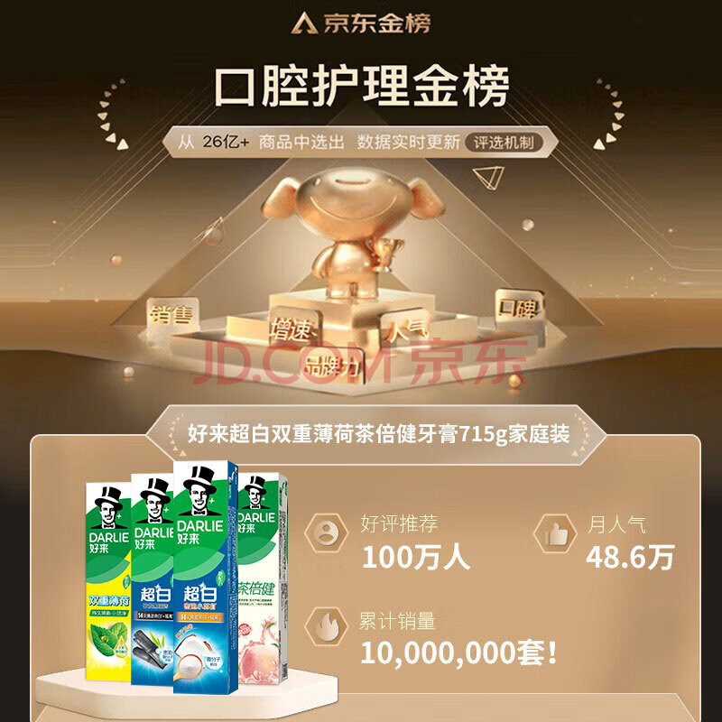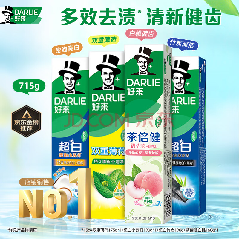 商品相册:好来(原黑人)超白小苏打薄荷茶倍健牙膏净白去渍清新口气护龈4支715g第