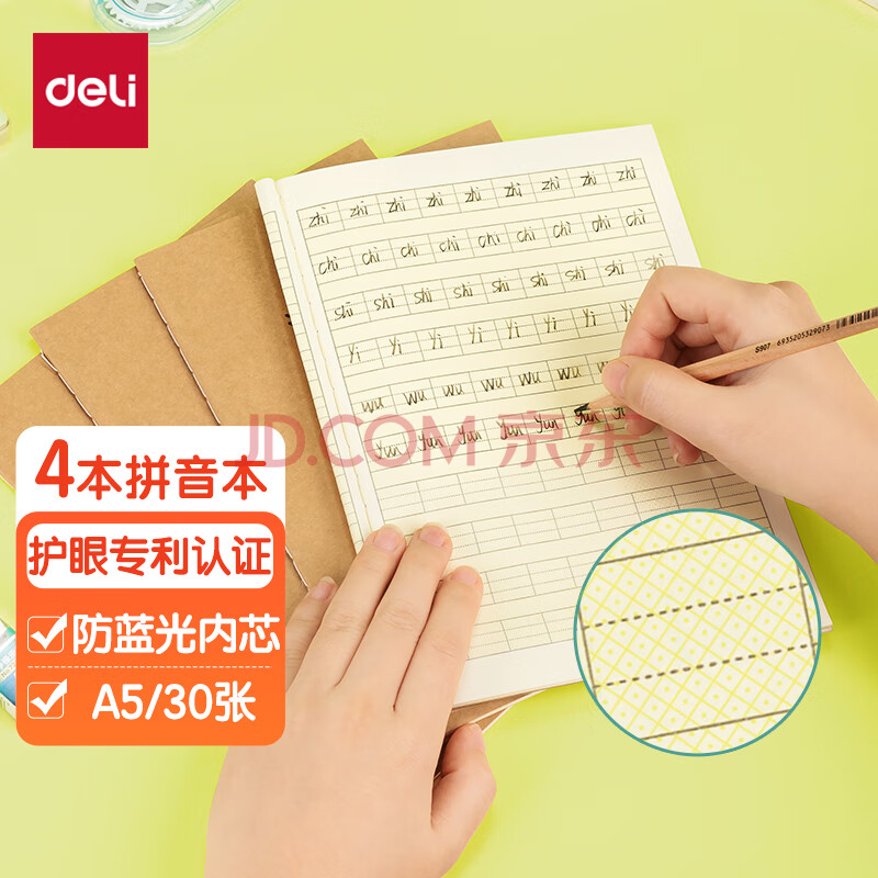 商品相册:得力(deli)护眼作业本4本A5/30张90格汉语拼音本小学生作业本笔记本子PFA530第