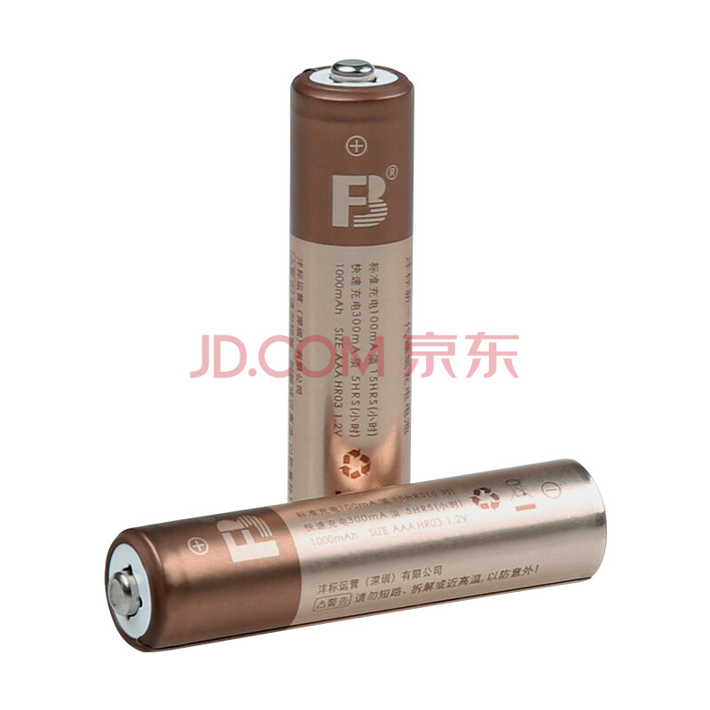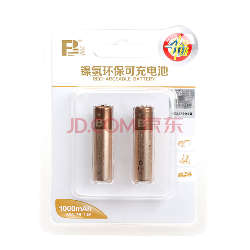 商品相册:沣标(FB)7号充电电池 AAA1000mAh 2节装 七号镍氢高容量 适用玩具/闹钟/遥控器/鼠标键盘等第