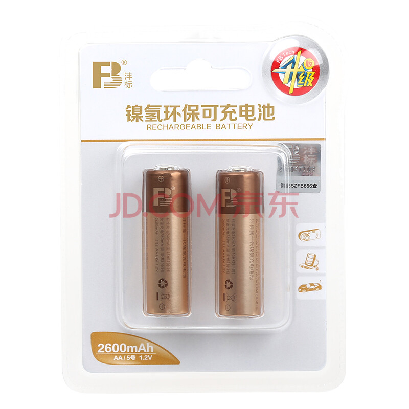 商品相册:沣标(FB)5号充电电池AA2600mAh*2节装 五号镍氢可充电适用相机/玩具/遥控器/鼠标键盘等第