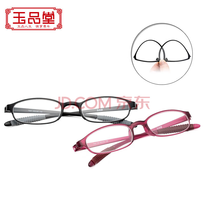 商品相册:玉品堂老花镜男女超轻TR老年人老光眼镜时尚花镜京东自营7001正品200度第