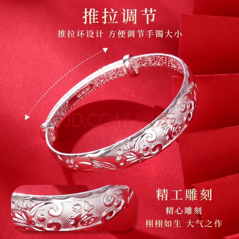 商品相册:老银匠s999足银手镯女式中老年新年礼物送妈妈长辈银镯子福字银手镯第