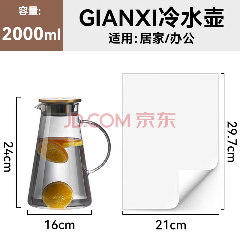 商品相册:GIANXI冷水壶大容量家用耐高温高硼硅玻璃凉白开水壶单壶1.8L礼物第