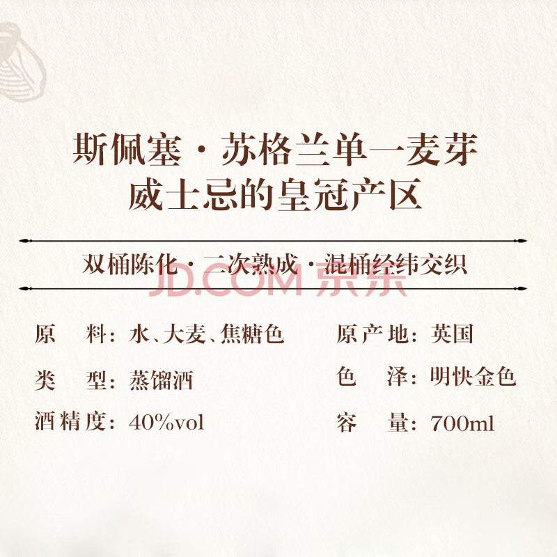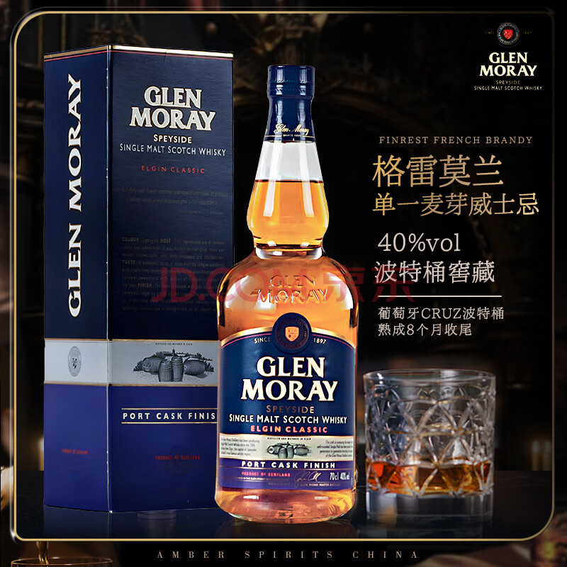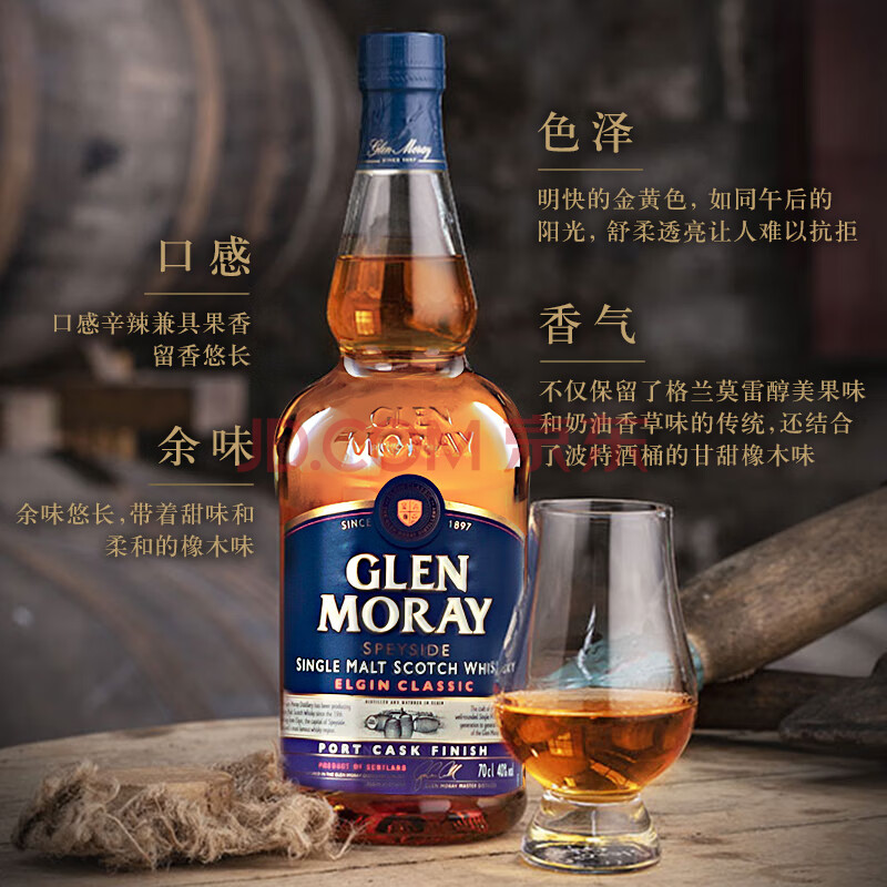 商品相册:格兰莫雷(Glen Moray)洋酒 经典 波特桶 斯佩塞 单一麦芽 40度 威士忌 700ml第