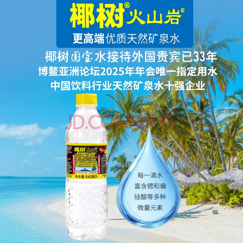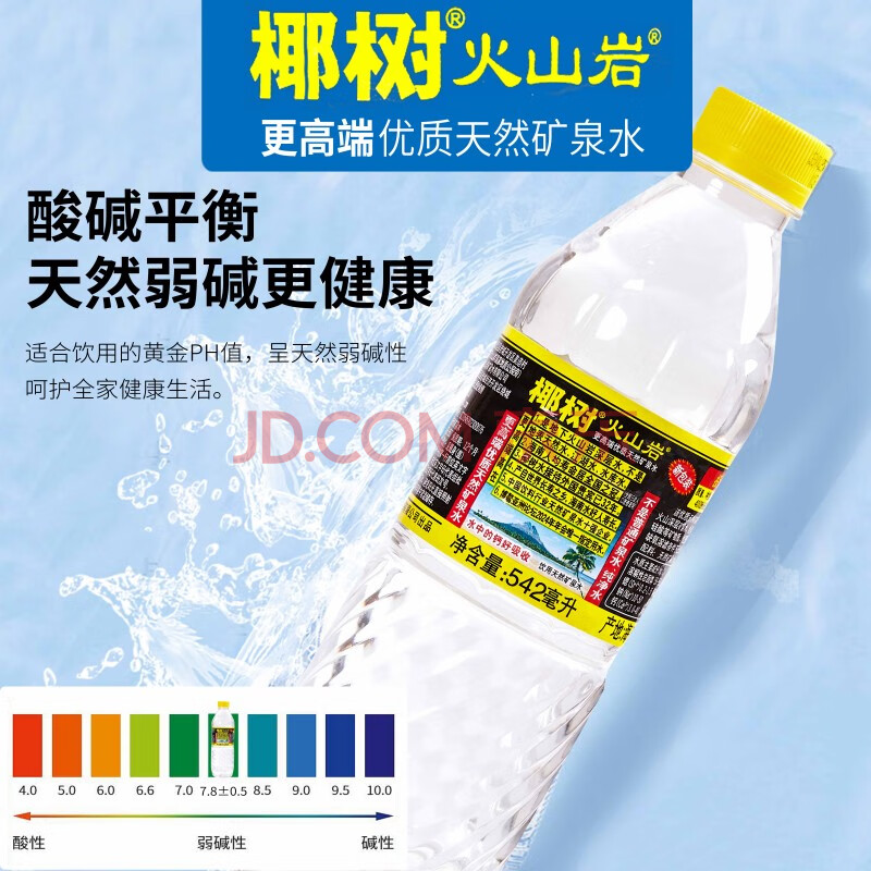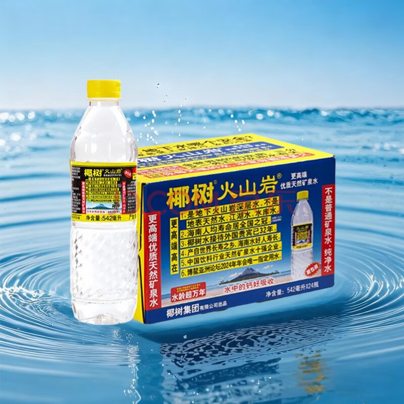 商品相册:椰树火山岩饮用天然弱碱性含锶矿泉水 542ml*24瓶 饮用水 海南特产第