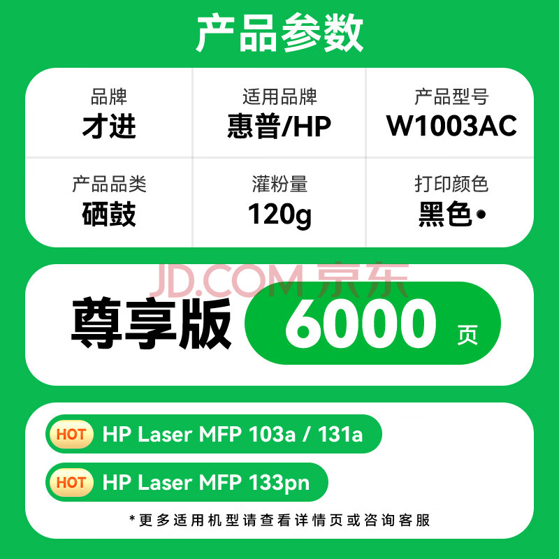商品相册:才进适用惠普103a硒鼓带芯片131a打印机硒鼓HP Laser MFP 133pn碳粉墨盒易加粉w1003ac激光复印一体机墨粉盒第