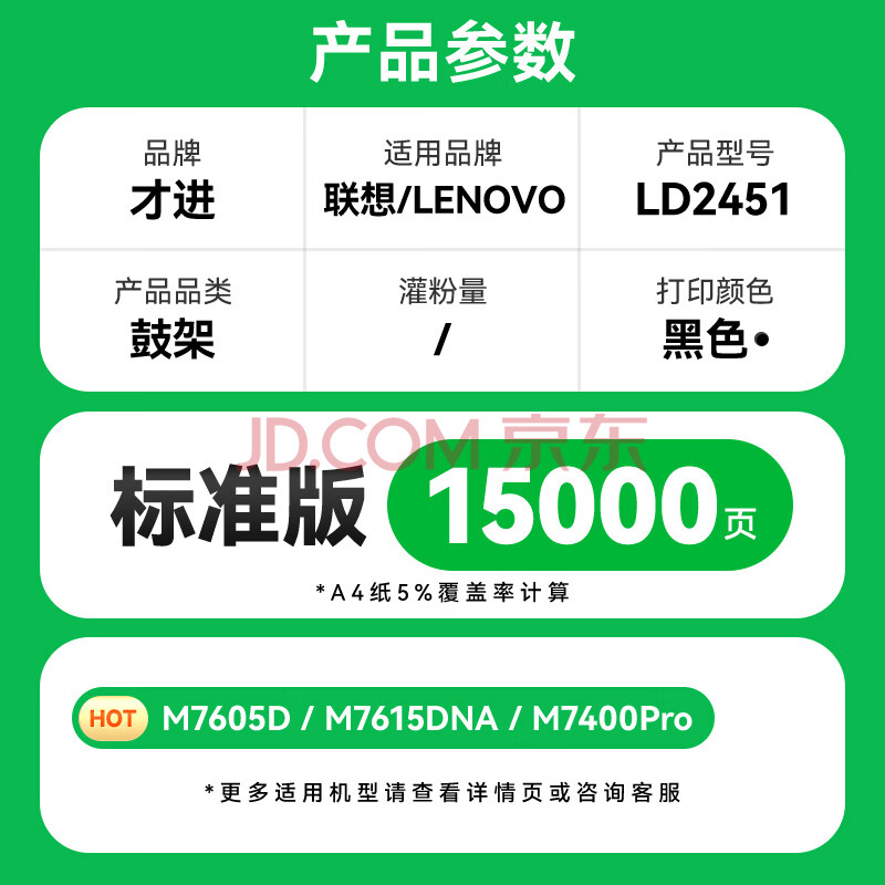 商品相册:才进适用联想m7400pro粉盒m7605d硒鼓m7615dna墨粉盒lj2605d m7655dhf碳粉m7405d m7455dnf打印机墨盒lt2451h第