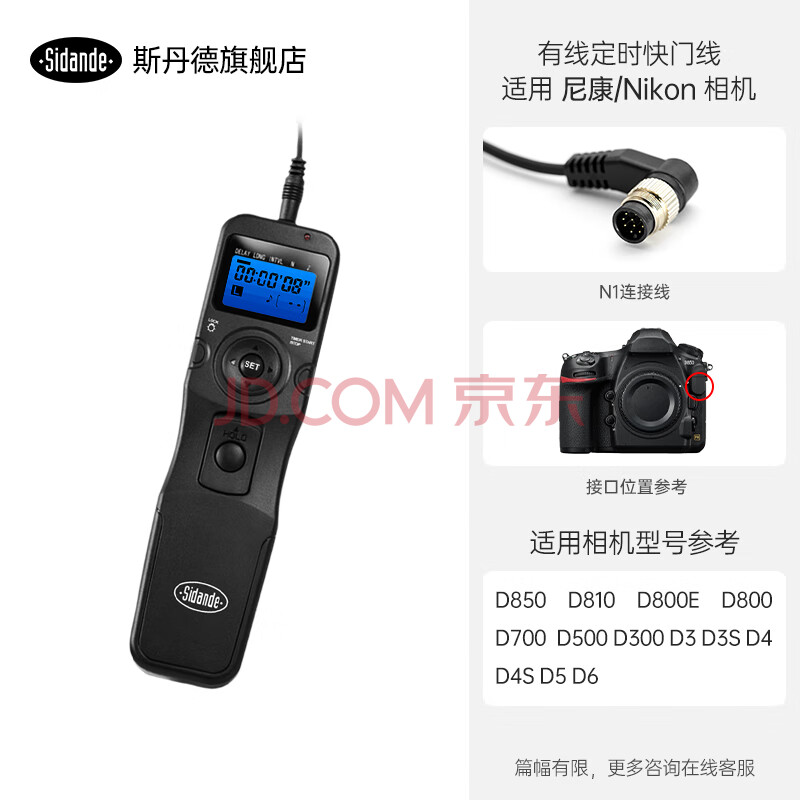 商品相册:斯丹德7100N1定时快门线单反相机摇控器延时摄影防抖适用尼康D850 D810 D800 D700 D500 D300 D3第