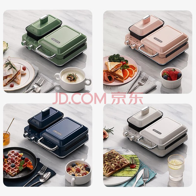 商品相册:摩飞电器早餐机家用迷你多功能电饼铛 双区料理轻食机面包煎烤机三明治机 MR9086落樱粉(标配)第