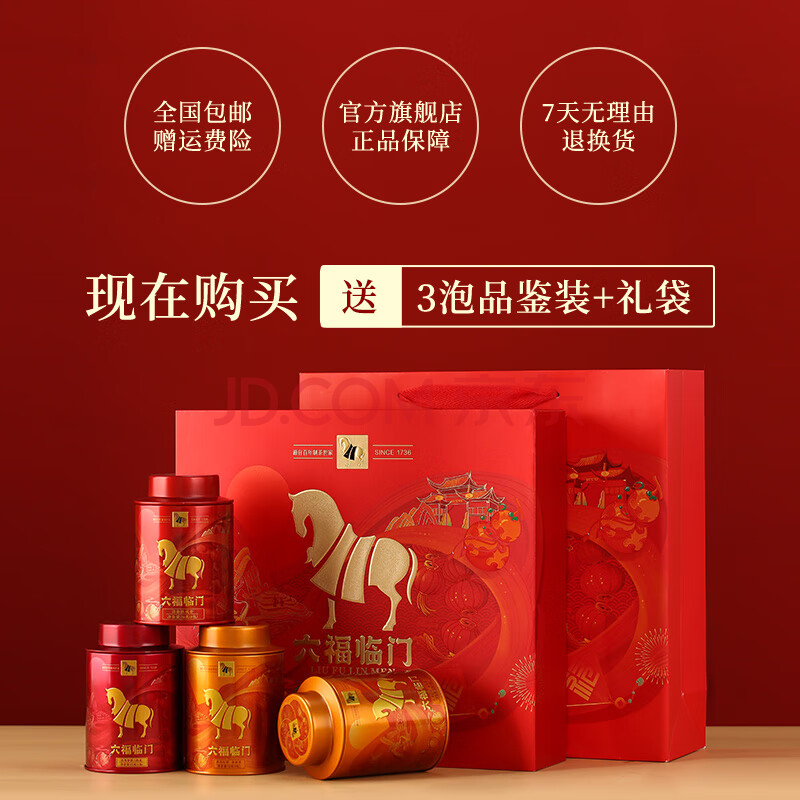 商品相册:八马茶业六福临门三大茗茶 红茶金骏眉铁观音肉桂248g茶叶礼盒送礼第