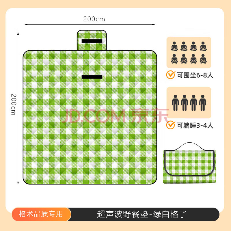 商品相册:格术野餐垫加大防潮露营垫加棉户外野炊地垫超声波加棉打地铺睡垫过夜第
