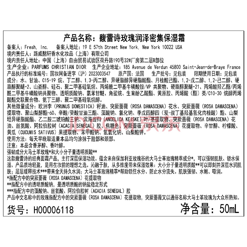 商品相册:Fresh馥蕾诗玫瑰润泽密集保湿霜50ml护肤品 生日礼物送女友送男友第