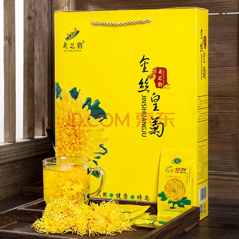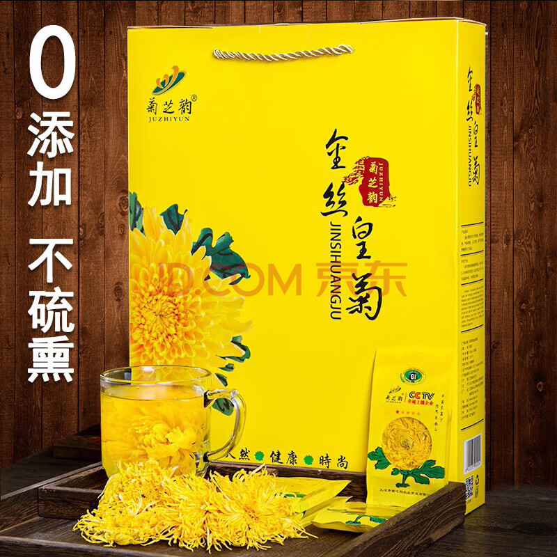 商品相册:菊芝韵花草茶茗茶 【特级品质100朵】0添加 金丝皇菊花茶礼盒装60g第