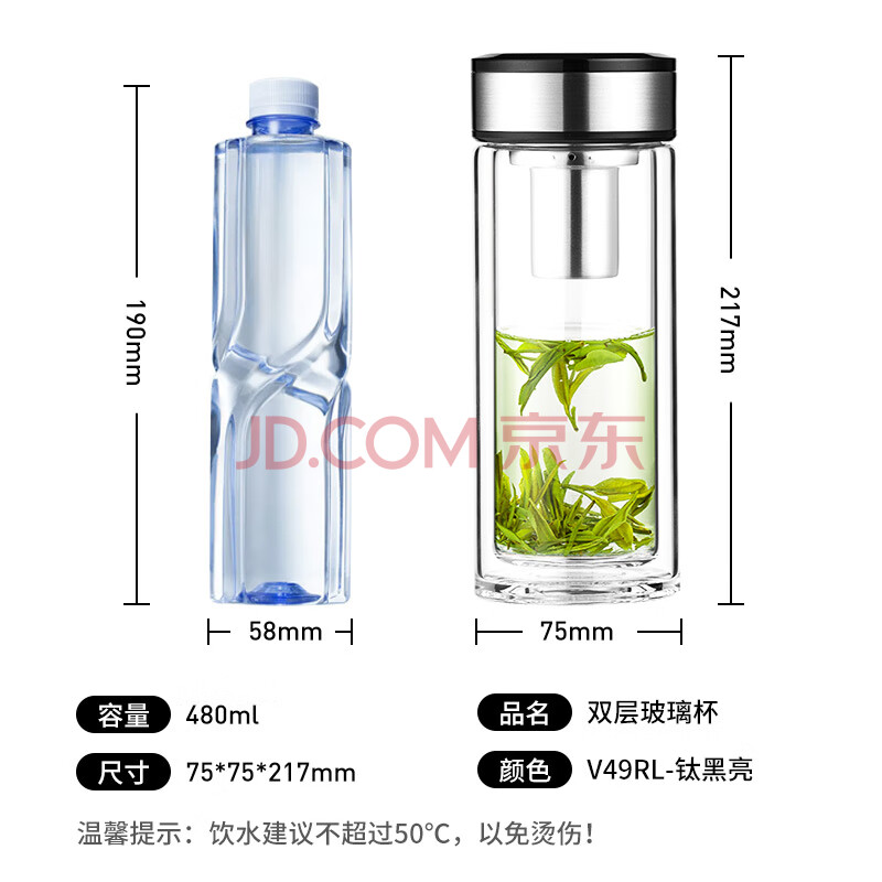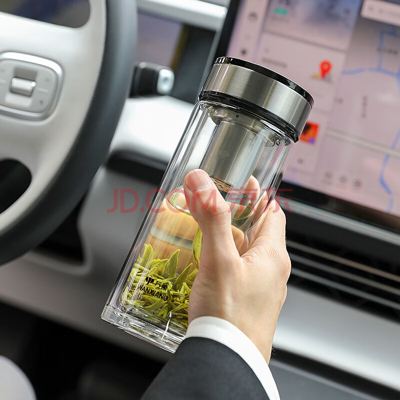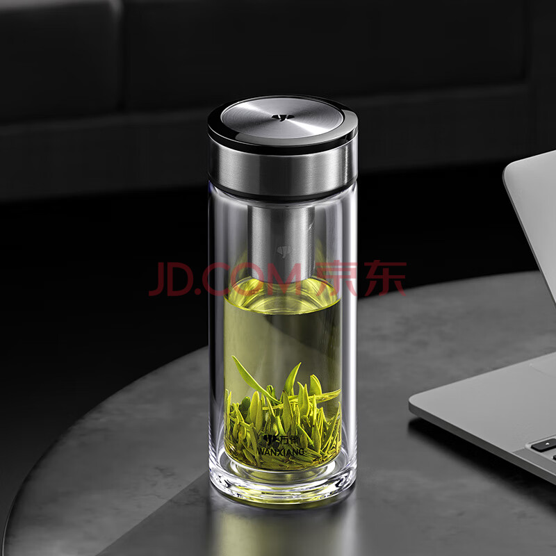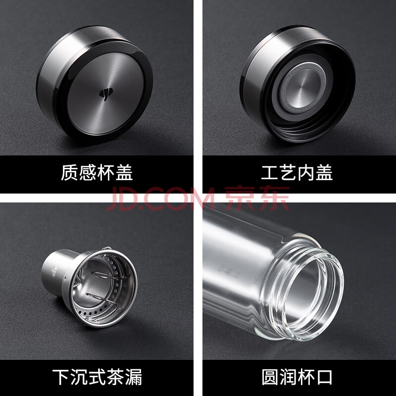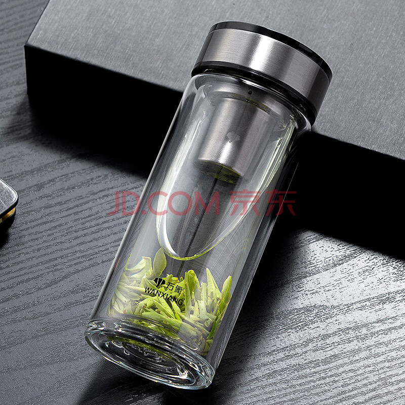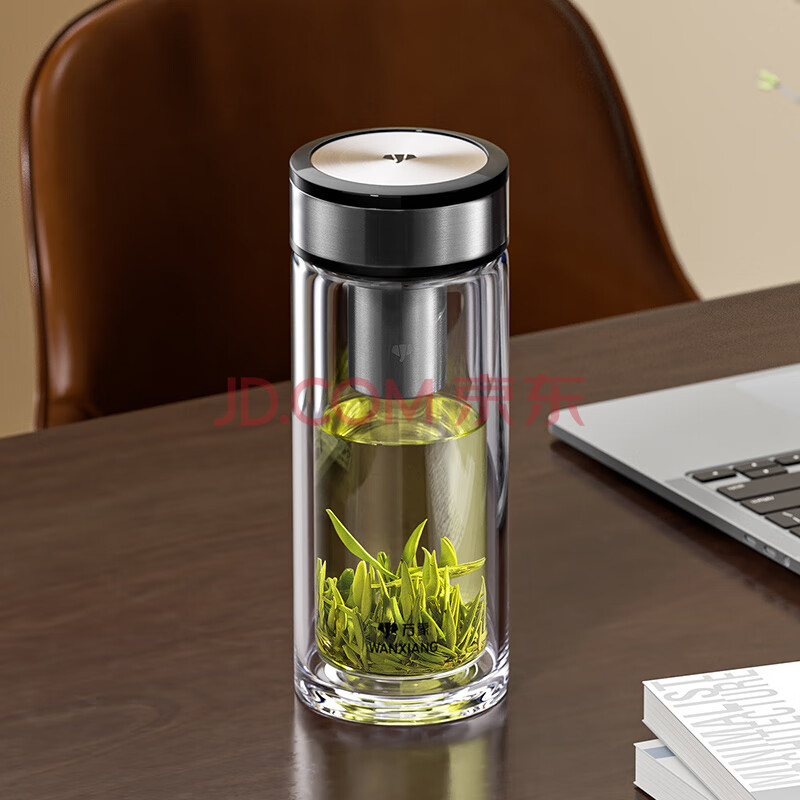 商品相册:万象(WANXIANG)双层玻璃杯V49RL商务办公便携装钛黑亮便携车载大容量居家泡茶杯第