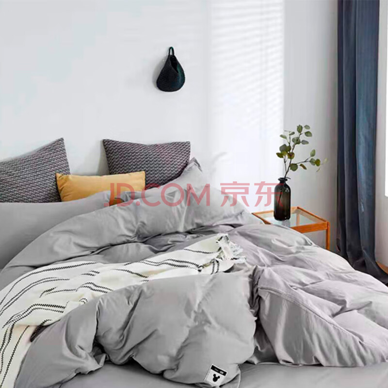 商品相册:迪士尼 DISNEY 时尚灰四件套 水洗棉床品套件第