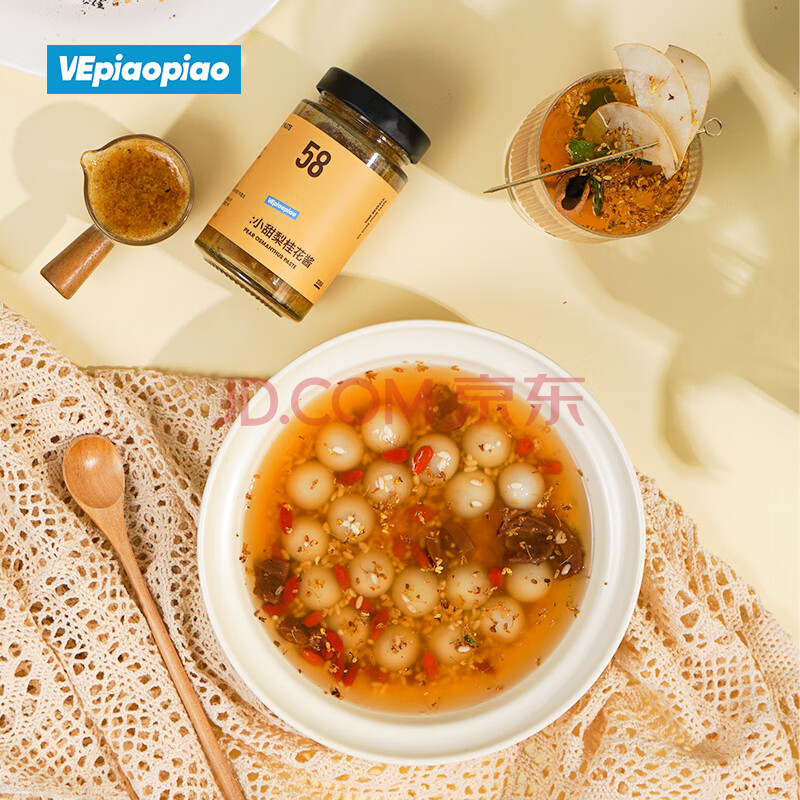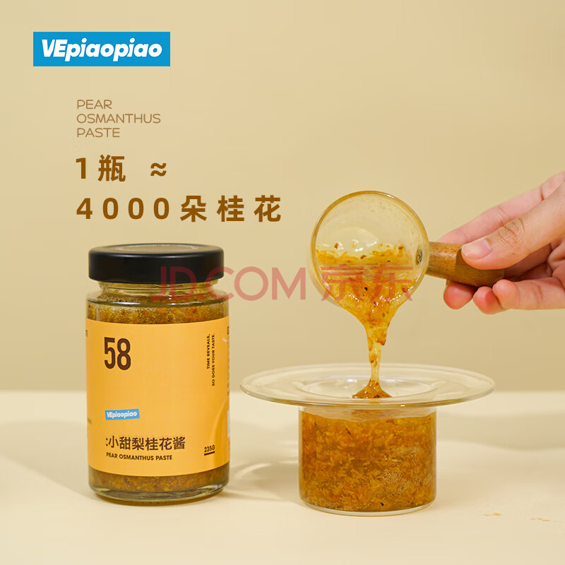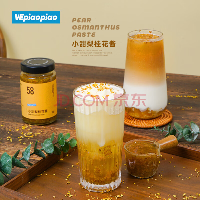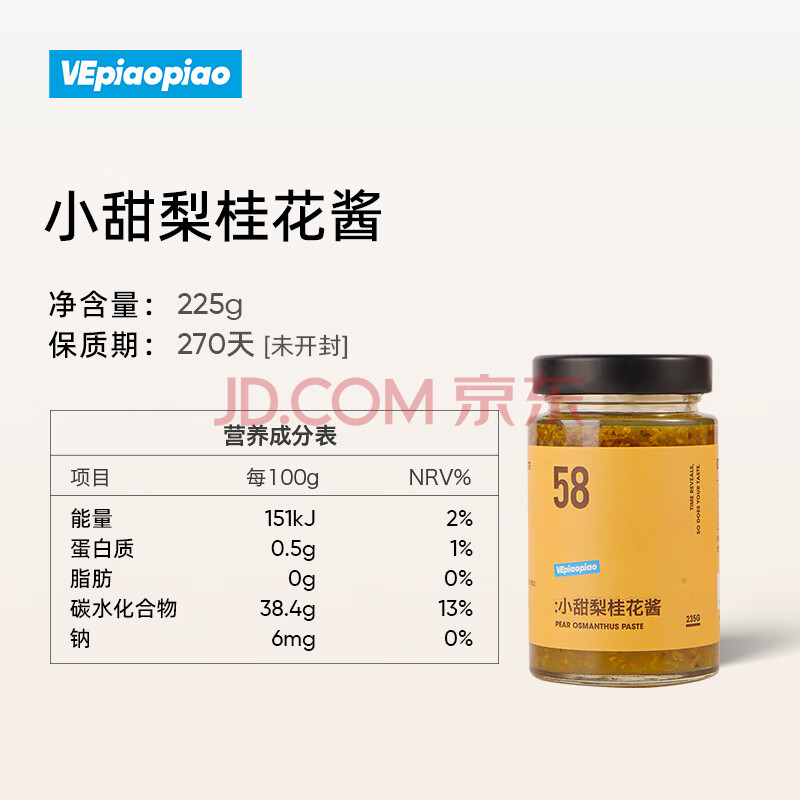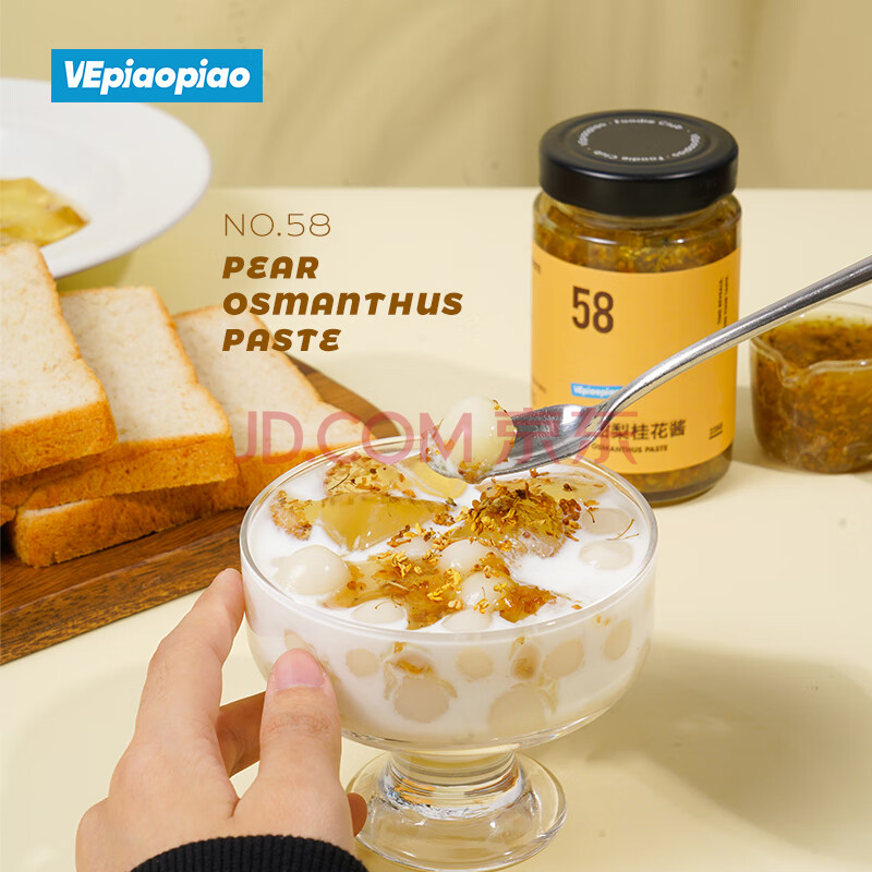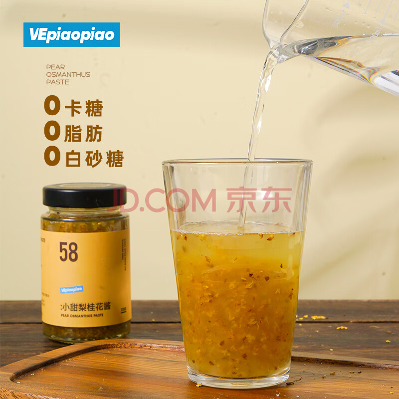 商品相册:VEpiaopiao小甜梨桂花酱0脂肪无白砂糖 桂花酿果酱冲饮面包涂抹净含量225g第