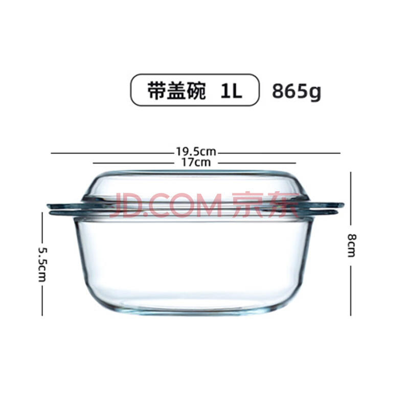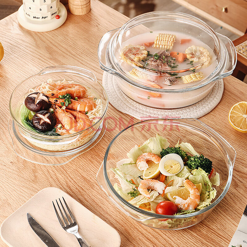 商品相册:格娜斯学生泡面碗双耳透明玻璃碗带盖微波炉专用碗耐热汤碗面碗沙拉碗1L第