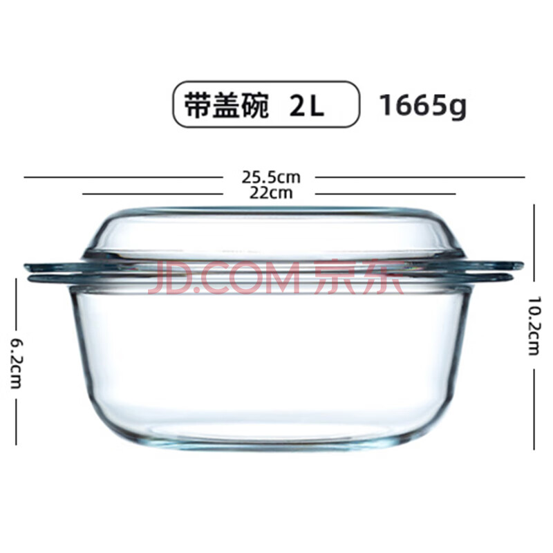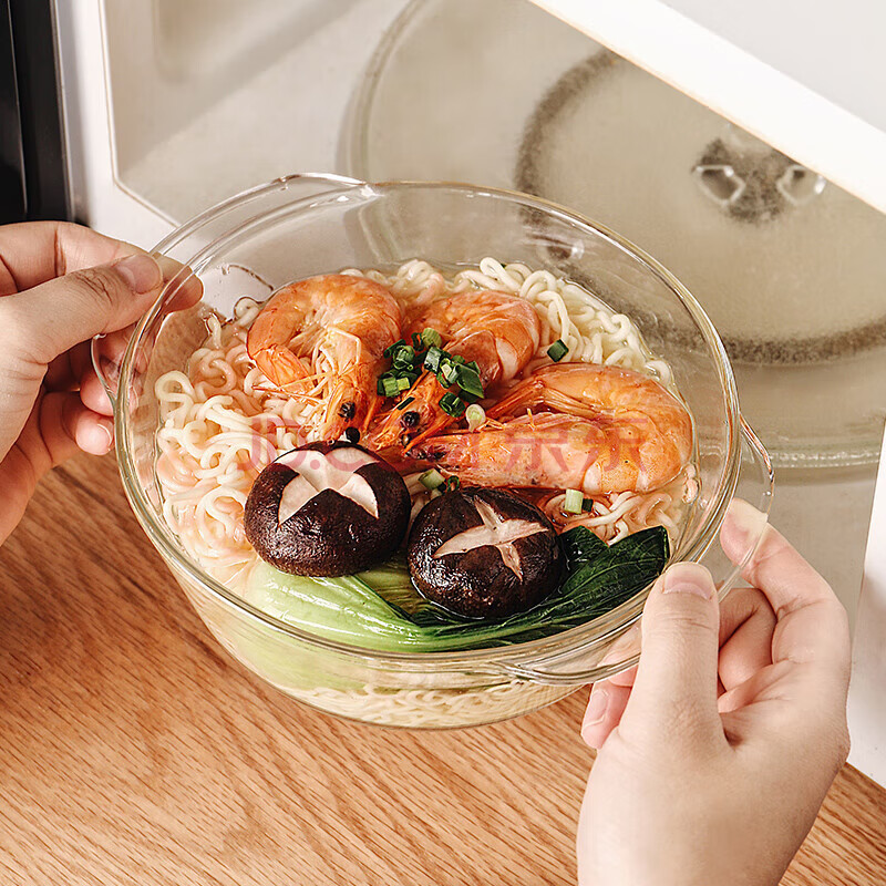 商品相册:格娜斯双耳透明耐热玻璃碗大号带盖微波炉专用碗汤碗面碗沙拉碗烤箱碗2L第