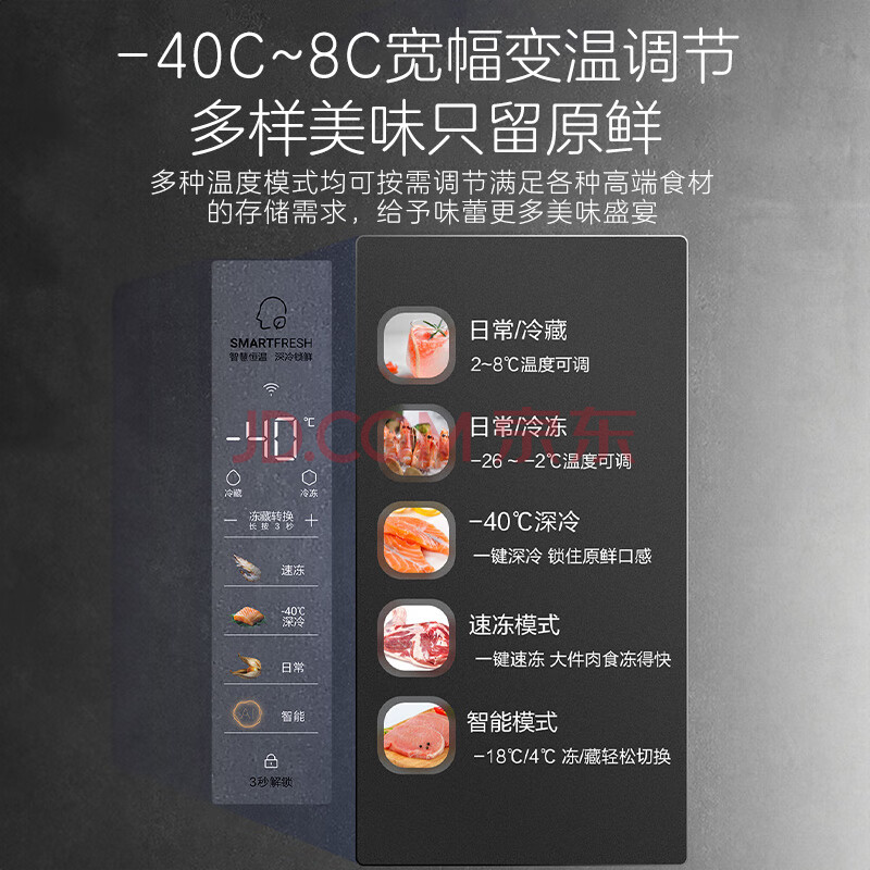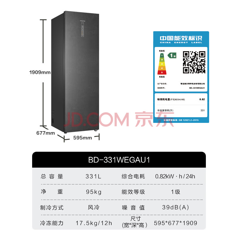商品相册:卡萨帝(Casarte)【原石】331升立式冰柜零距离嵌入变频风冷家用 -40℃冷柜冰箱冷藏冷冻柜BD-331WEGAU1第