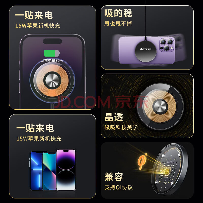 商品相册:KOOLIFE 苹果无线充电器 magsafe磁吸手机无线快速充电器15w装原Apple通用iPhone14promax/plus/13/12/11mini第