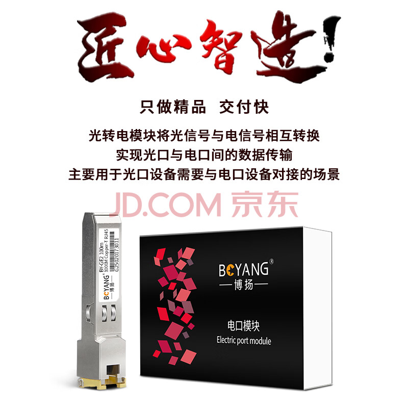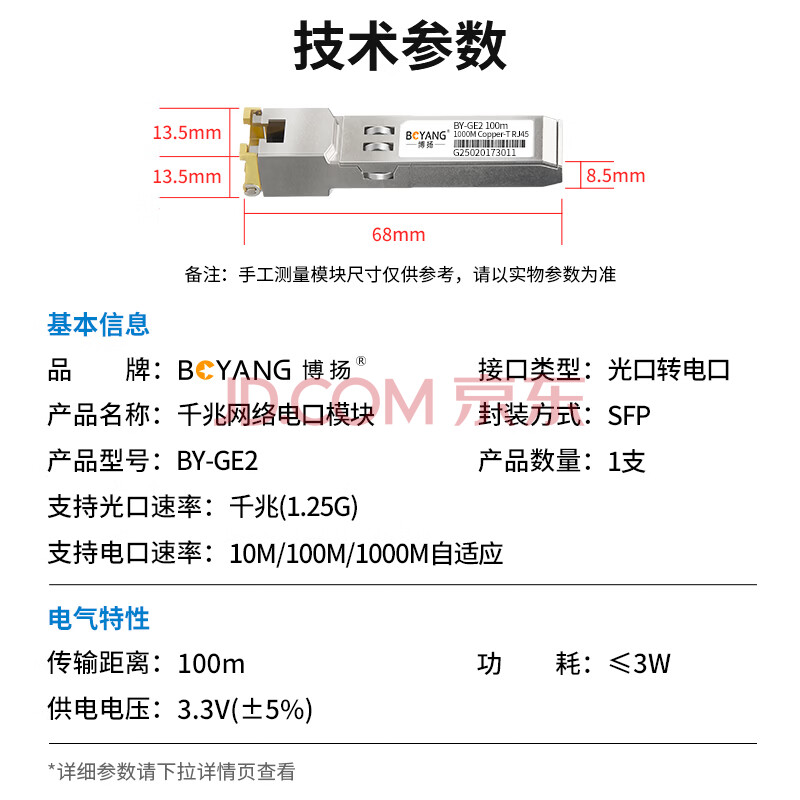 商品相册:博扬(BOYANG) BY-GE2 SFP-GE光转电口模块千兆 光电转换模块(100m,RJ45)适配国产交换机SFP-GE-T第