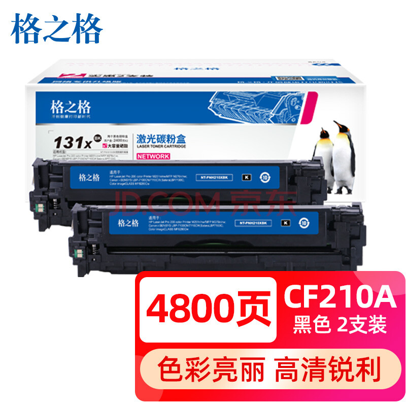 商品相册:格之格CF210A硒鼓双支装适用惠普M251n M276n 276nw佳能LBP-7100CN 7110CW MF8280Cw黑色粉盒第