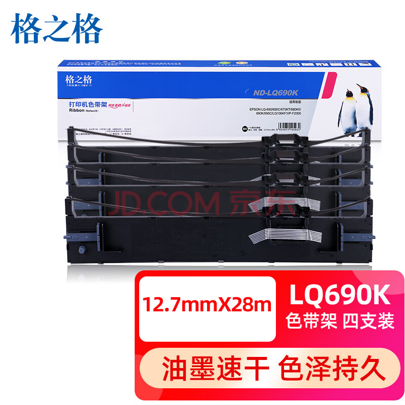 商品相册:格之格LQ680KII打印机色带 适用爱普生LQ690K 675KT LQ106KF LQ695K VP-F2000 LQ680K2色带架 4支装第