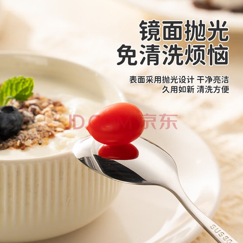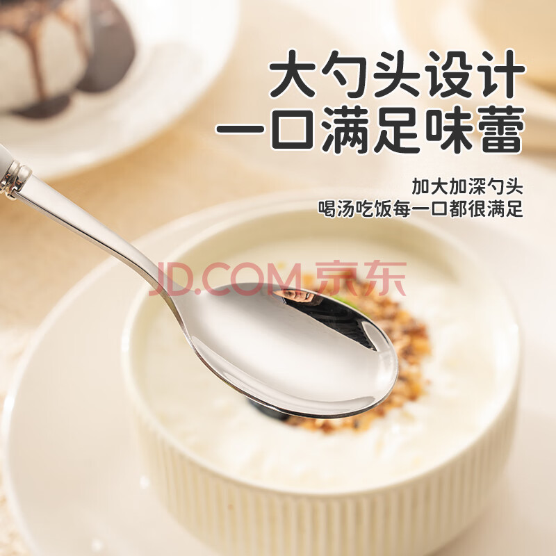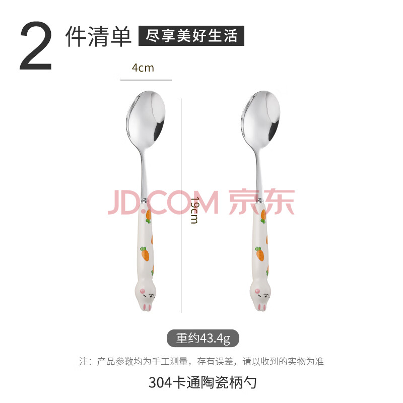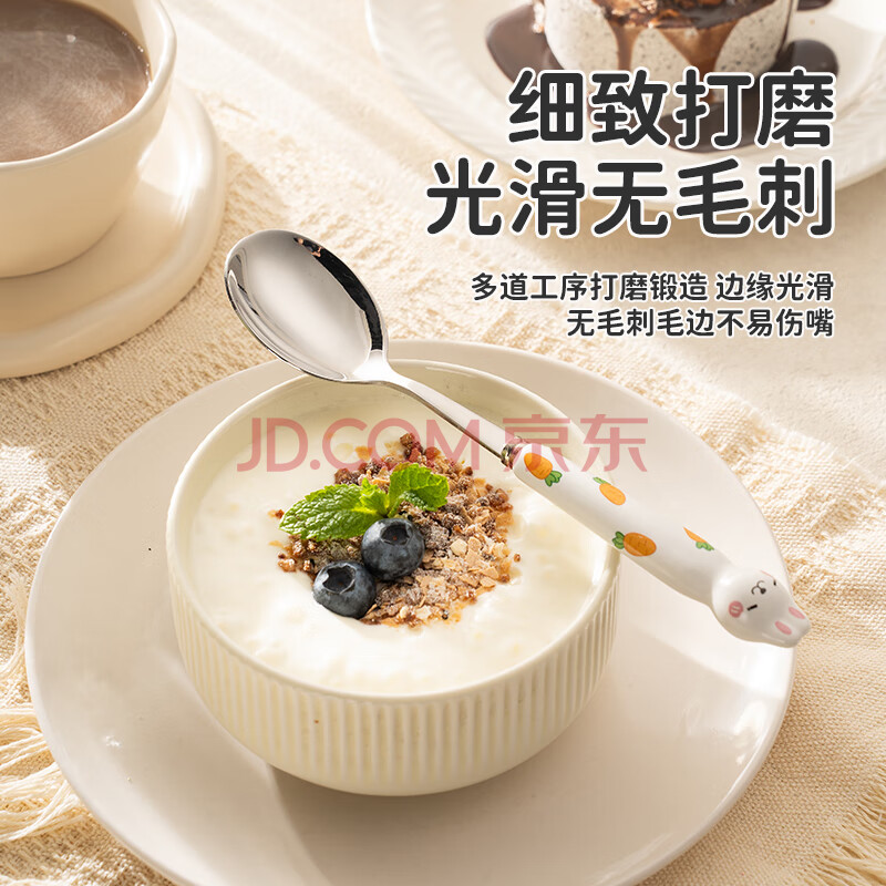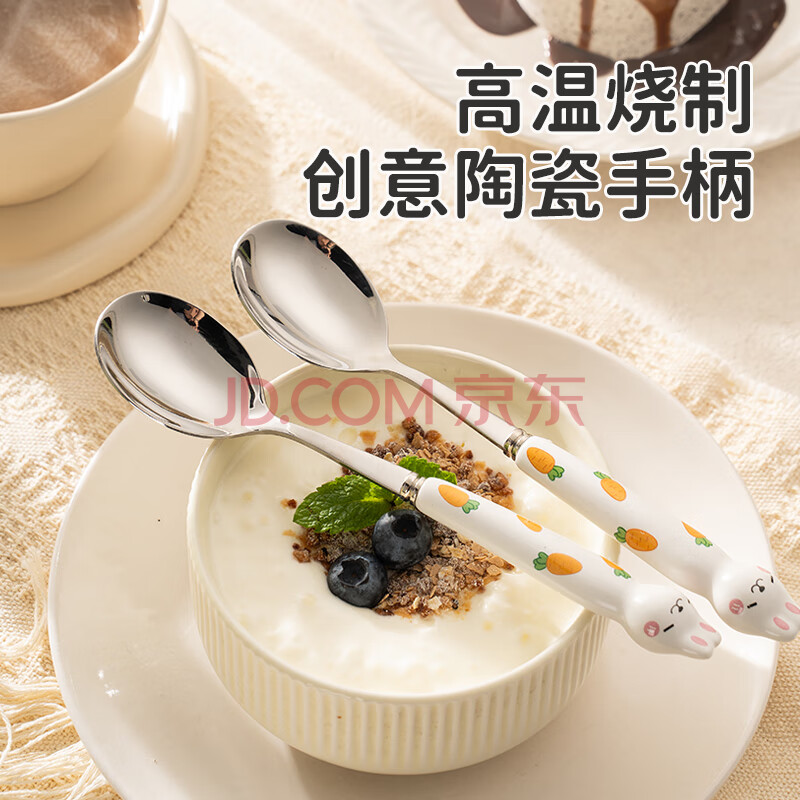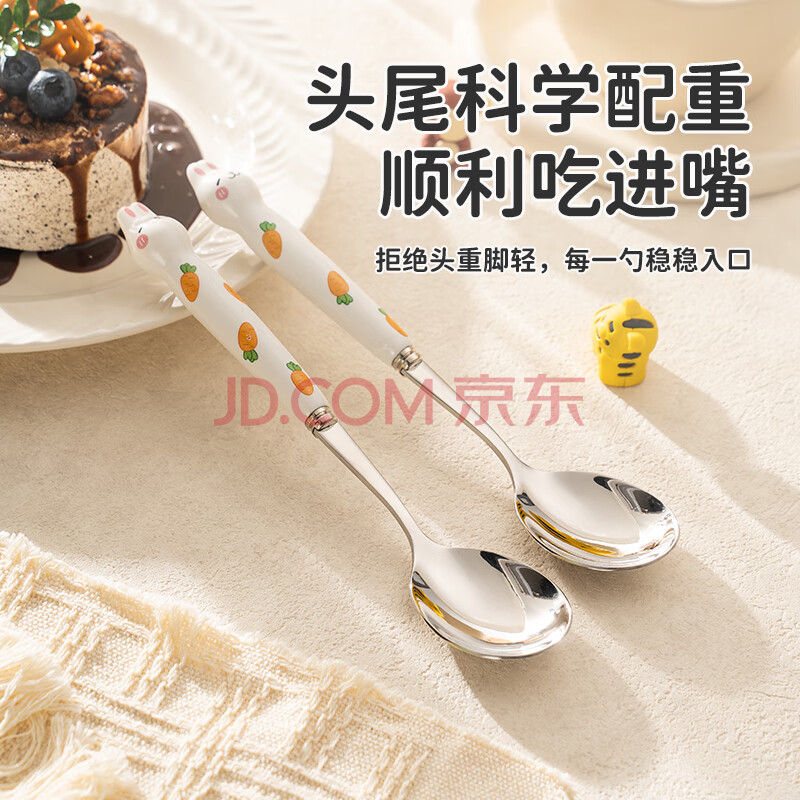 商品相册:彩致(CAIZHI)304不锈钢勺子汤勺儿童勺陶瓷柄餐具可爱兔子勺子2支装 CZ6617第