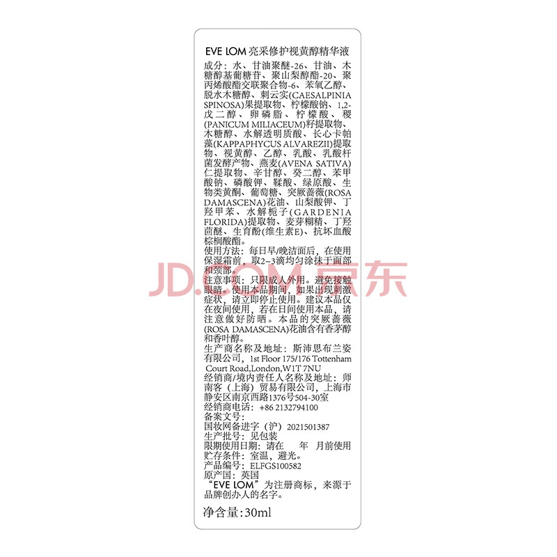 商品相册:EVE LOM伊芙珑精华亮采修护视黄醇精华液30ml紧致提亮淡细纹 生日礼物第
