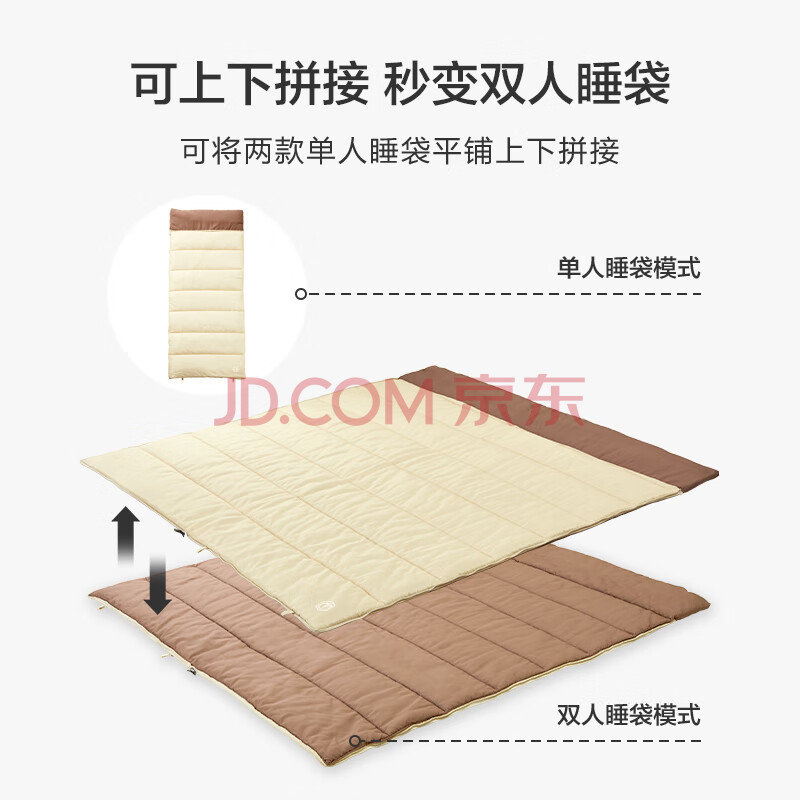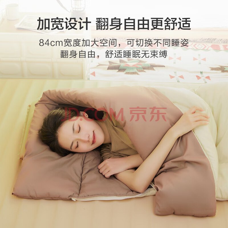 商品相册:京东京造 信封式磨毛睡袋 户外露营冬季加厚成人防潮恒温保暖 象牙白1.8kg第