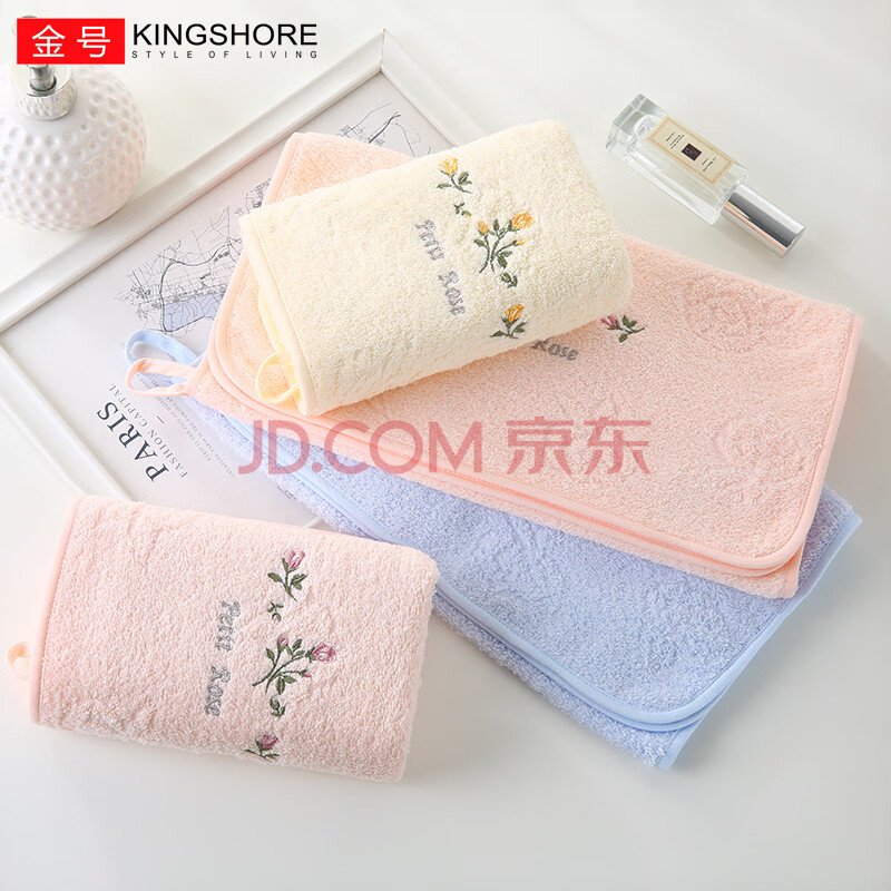 商品相册:金号纯棉洗脸柔软加厚绣花毛巾3条装A类洗脸巾 74*33cm 101g/条第