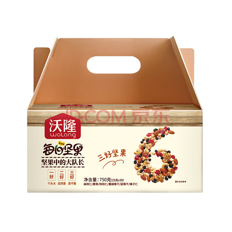 商品相册:沃隆 每日坚果750gA成人款(25g*30袋)坚果炒货 成人干果 包装随机第