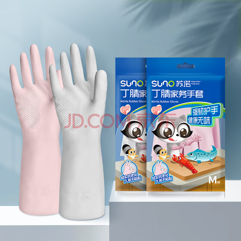 商品相册:苏诺丁腈手套M码2双装家务洗碗洗衣无味耐磨防滑清洁家政手套第