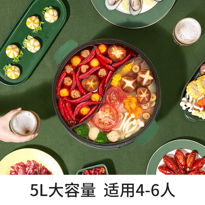 商品相册:九阳(Joyoung)鸳鸯锅 电火锅 可分离HI电磁加热 5L容量 多功能料理锅 HG50-G922第