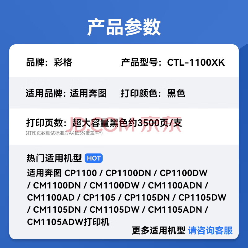 商品相册:彩格CTL-1100粉盒适用奔图CP1100DN硒鼓CM1100DN/ADN/DW/ADW CP1100DW CP1100 CP1105DN打印机墨盒黑色超大容量第