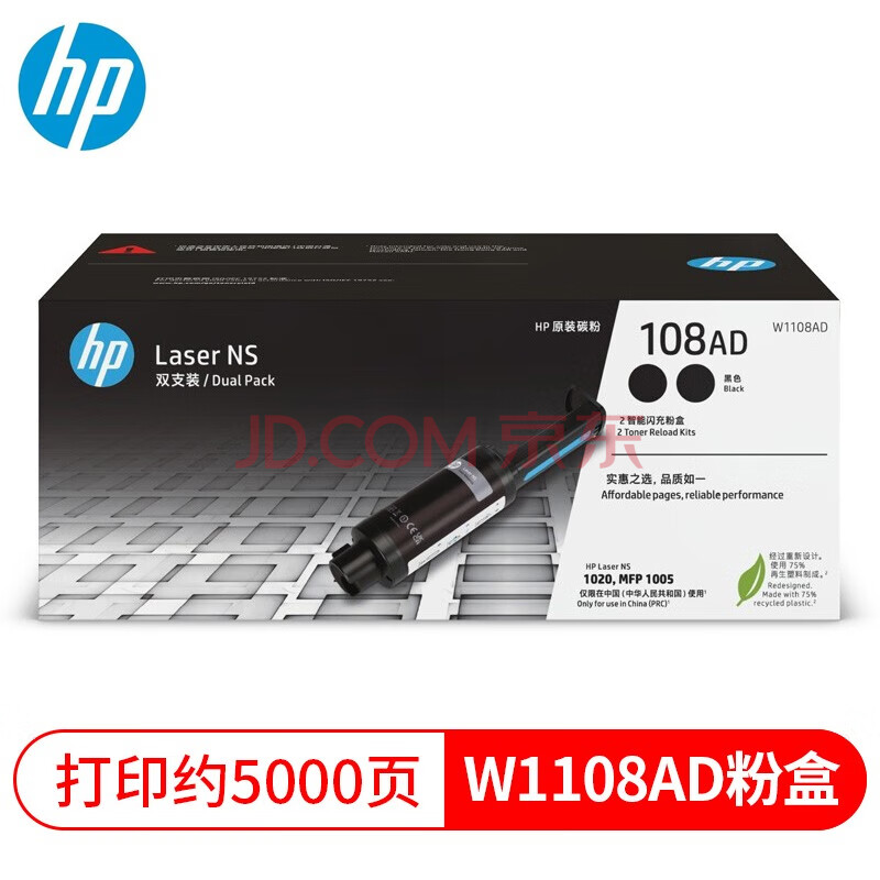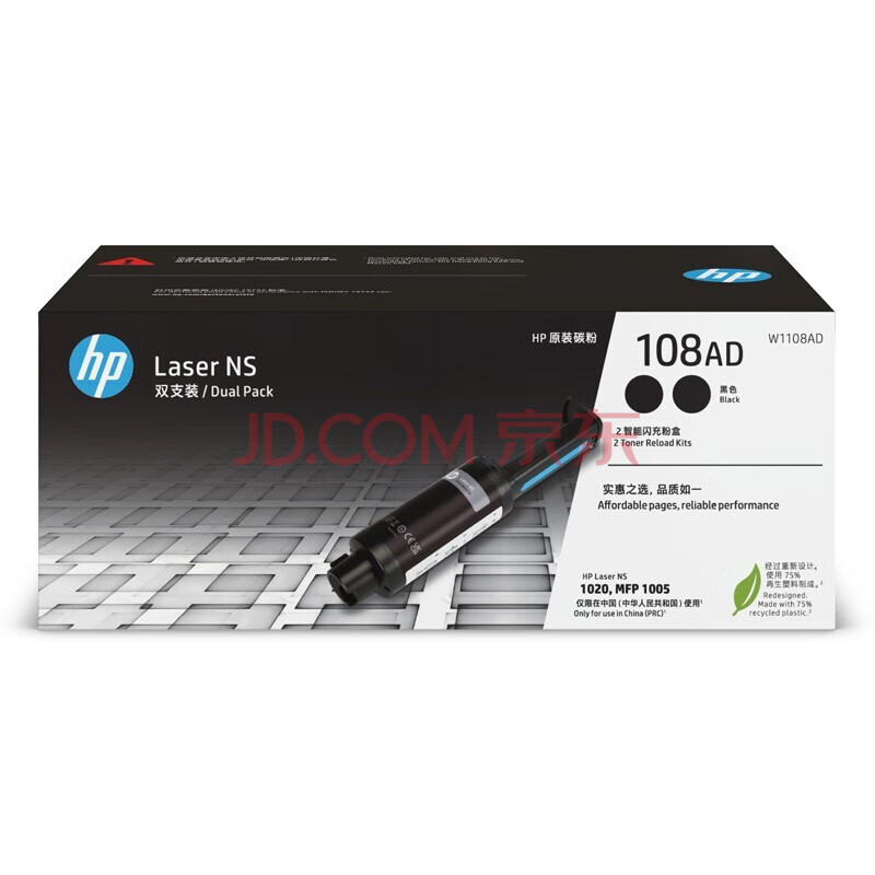 商品相册:惠普HP108AD智能闪充粉盒 双支装 W1108AD墨粉适用hp MFP NS1005/c/w NS1020/c/w 打印机碳粉 第