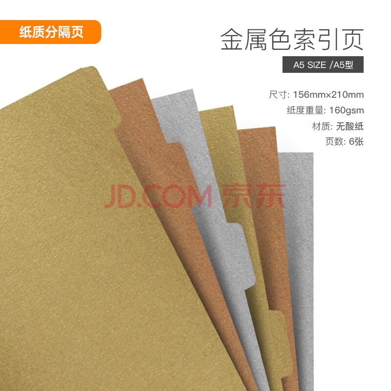 商品相册:Filofax内页替芯索引页记事本活页手帐本分隔页活页记事本替换芯英国进口打孔纸A5 金属色索引页132619第