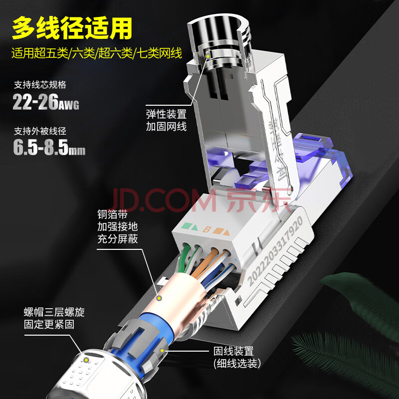 商品相册:CNCOB 超六类网线水晶头免压【极速万兆】 Cat6a网络免打水晶头 1个装 CN-MD2001P-CIG第