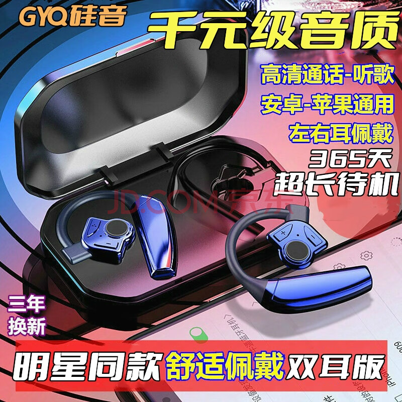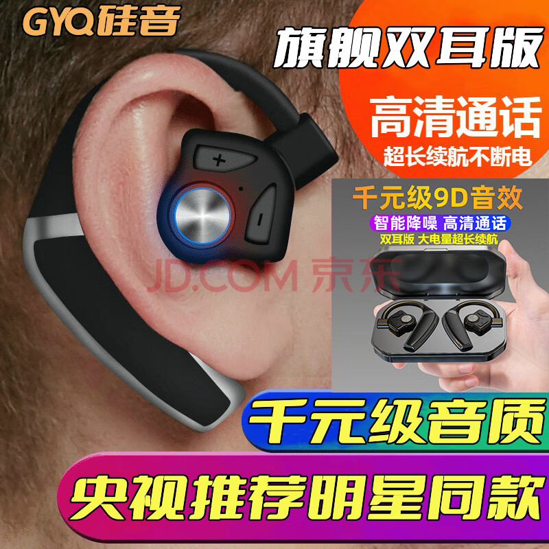 商品相册:硅音B1 双耳新款无线蓝牙耳机超长待机续航入耳式跑步运动听歌开车挂耳式降噪适用华为oppo苹果vivo第