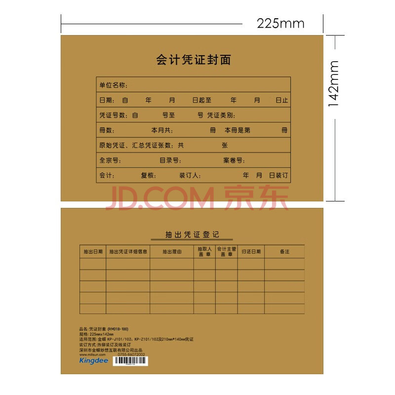 商品相册:金蝶(kingdee)会计凭证封面封底包角财务装订封皮225*142mm 100套/包热门商品办公用品打印纸第